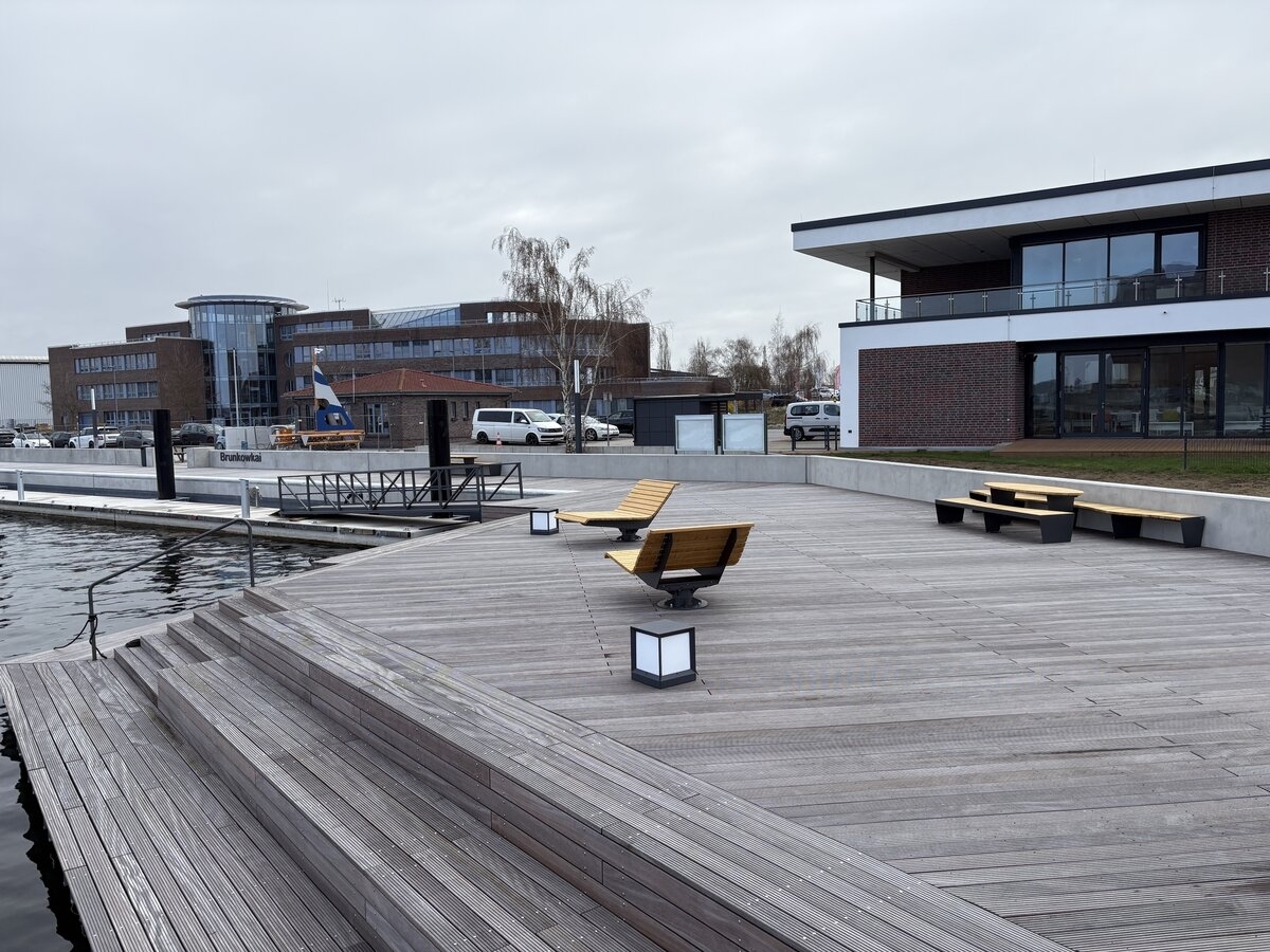 Eine neuer Wohlfühlort in Wismar: Die sanierte Steganlage Brunkowkai – der Wasserwanderrastplatz an der Stockholmer und Kopenhagener Straße – ist nun für die Öffentlichkeit zugänglich. Lediglich ein kleiner Bereich ist noch gesperrt, da dort einige Restarbeiten erfolgen müssen. Aber bereits jetzt ist es möglich, sich auf den neuen Bänken auszuruhen. Installiert wurden mehrere Sitzgruppen mit Tischen und Drehliegen.