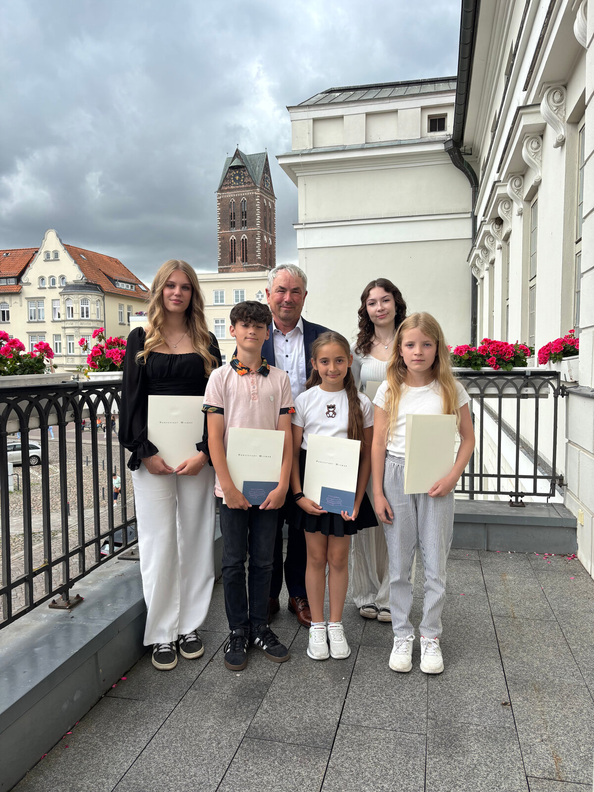 Bürgermeister Thomas Beyer überreichte am 07. Juli 2025 im Rathaus Urkunden der Ministerin für Bildung und Kindertagesförderung des Landes Mecklenburg-Vorpommern sowie Büchergutscheine im Wert von jeweils 25 Euro an die die fünf Kunstschaffenden.