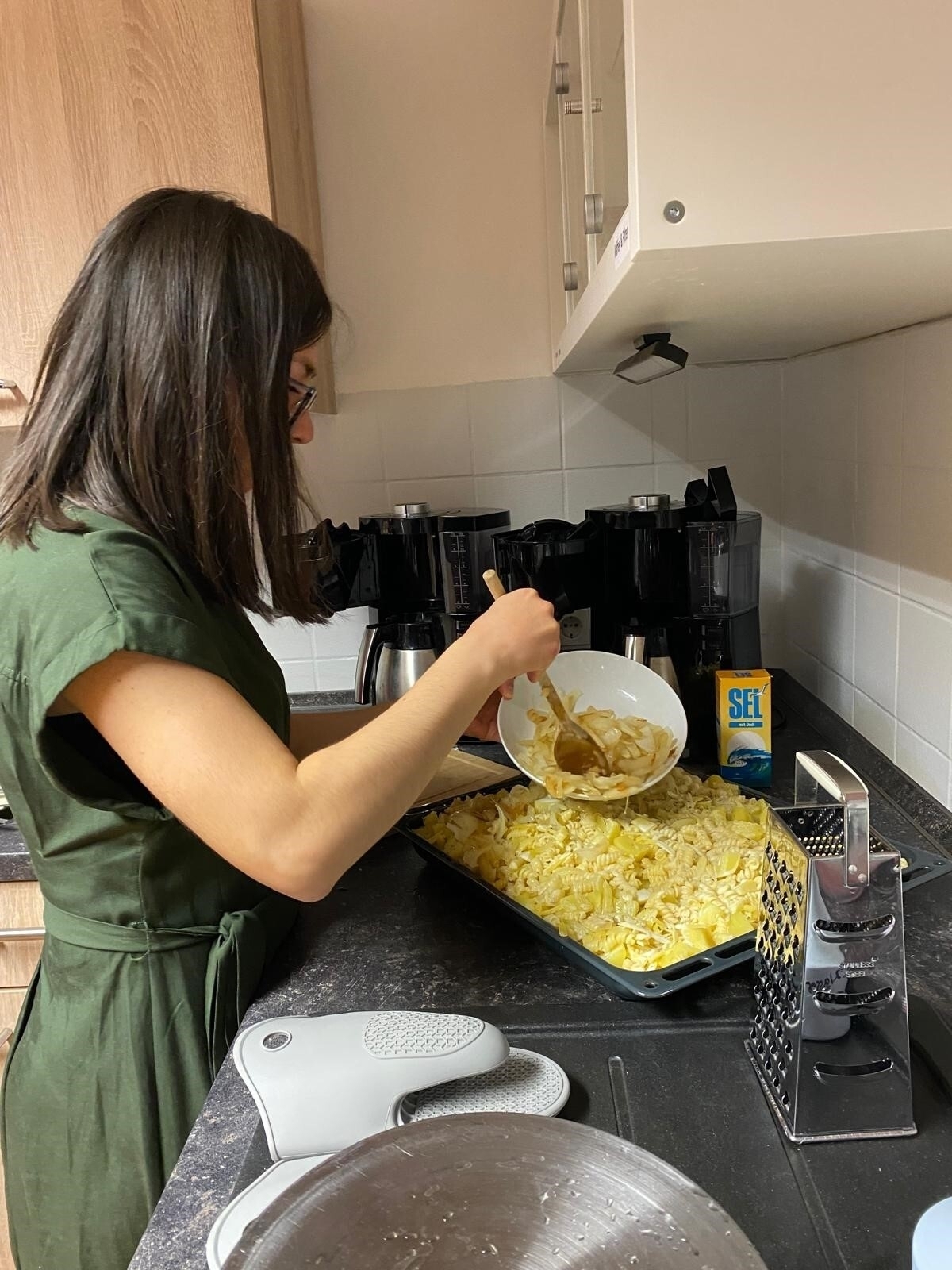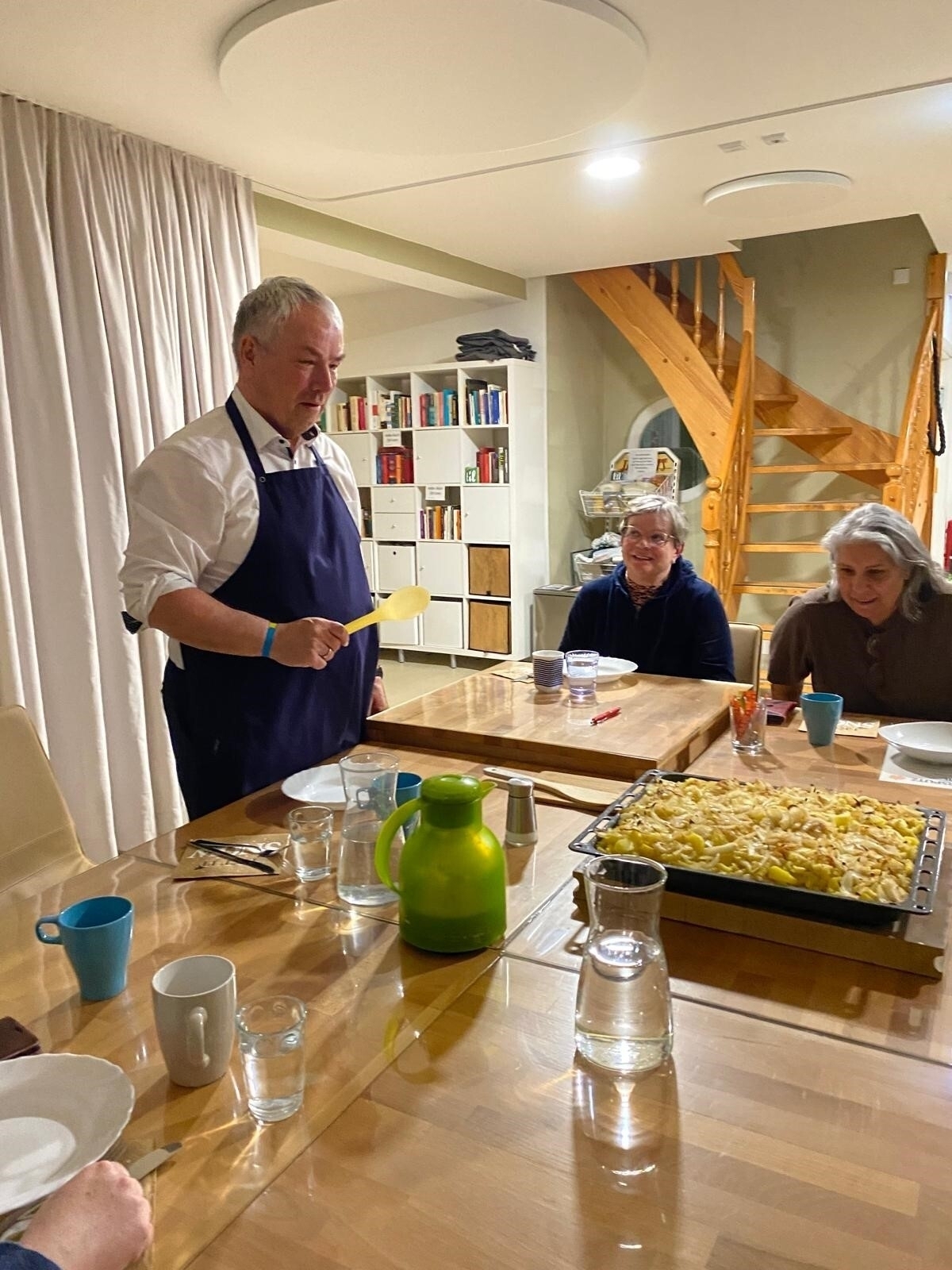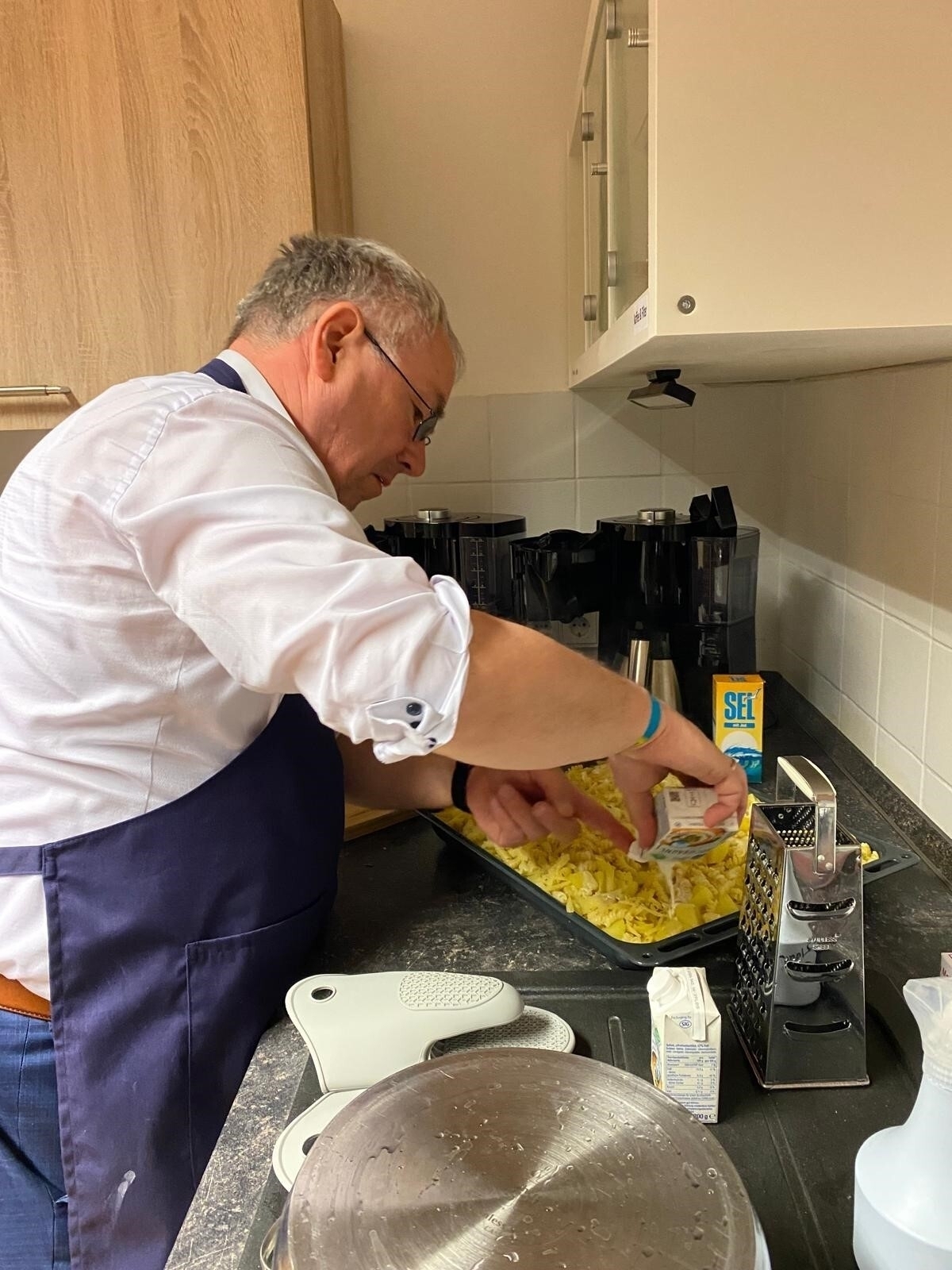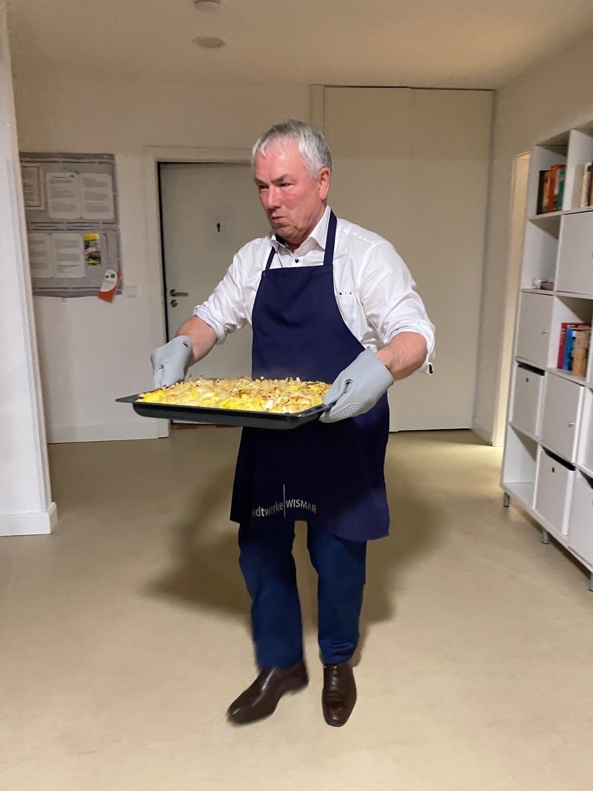 Es war ein besonderer Abend im Treff im Lindengarten (TiL), im "Café Miteinander": Gemeinsam mit Bürgerinnen und Bürgern aus Wismar und mit Wurzeln aus Taiwan, Kolumbien, Kanada und dem Iran wurde am 27. März 2026 zusammen mit Bürgermeister Thomas Beyer das traditionelle Schweizer Gericht Älpler Macaroni zubereitet.