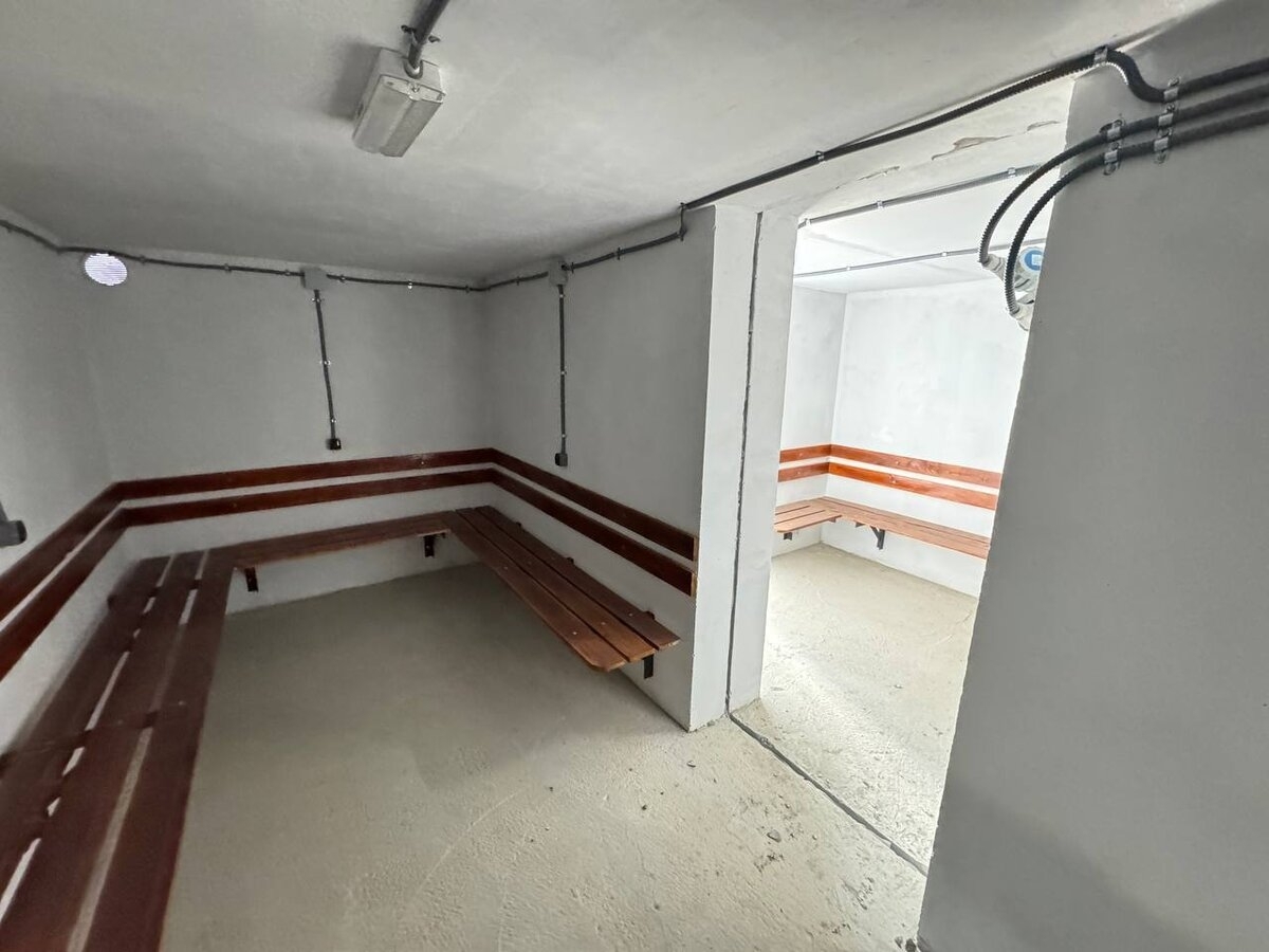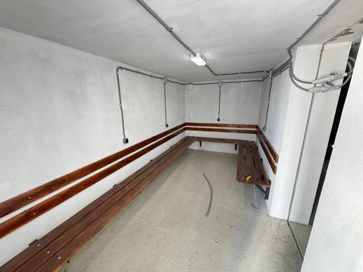 Der Schutzraum ist modular aufgebaut, zwei Module sind miteinander verbunden. Sie bieten Platz für knapp 30 Personen. Der Doppelschutzraum aus Stahlbeton kostete etwa 33.400 Euro.