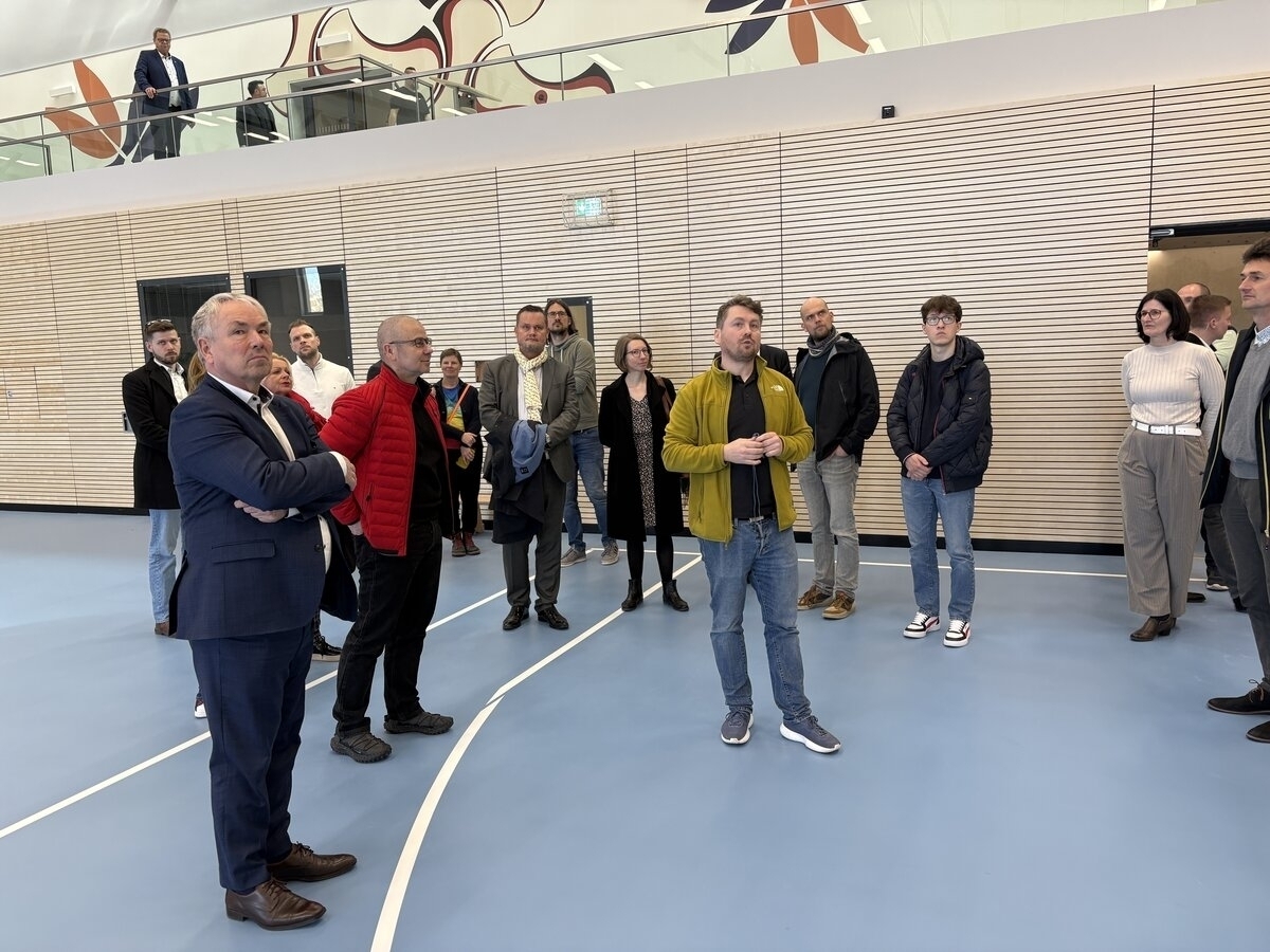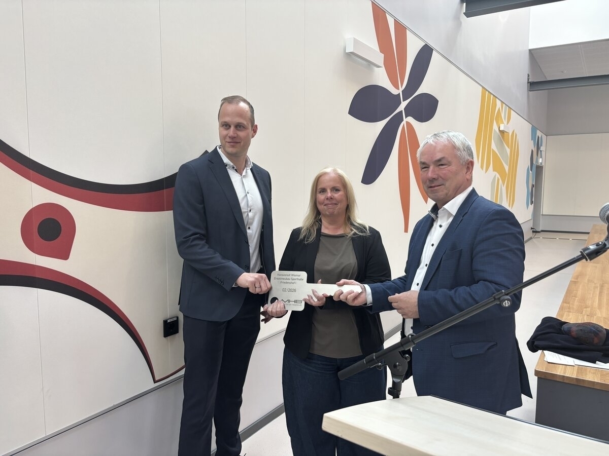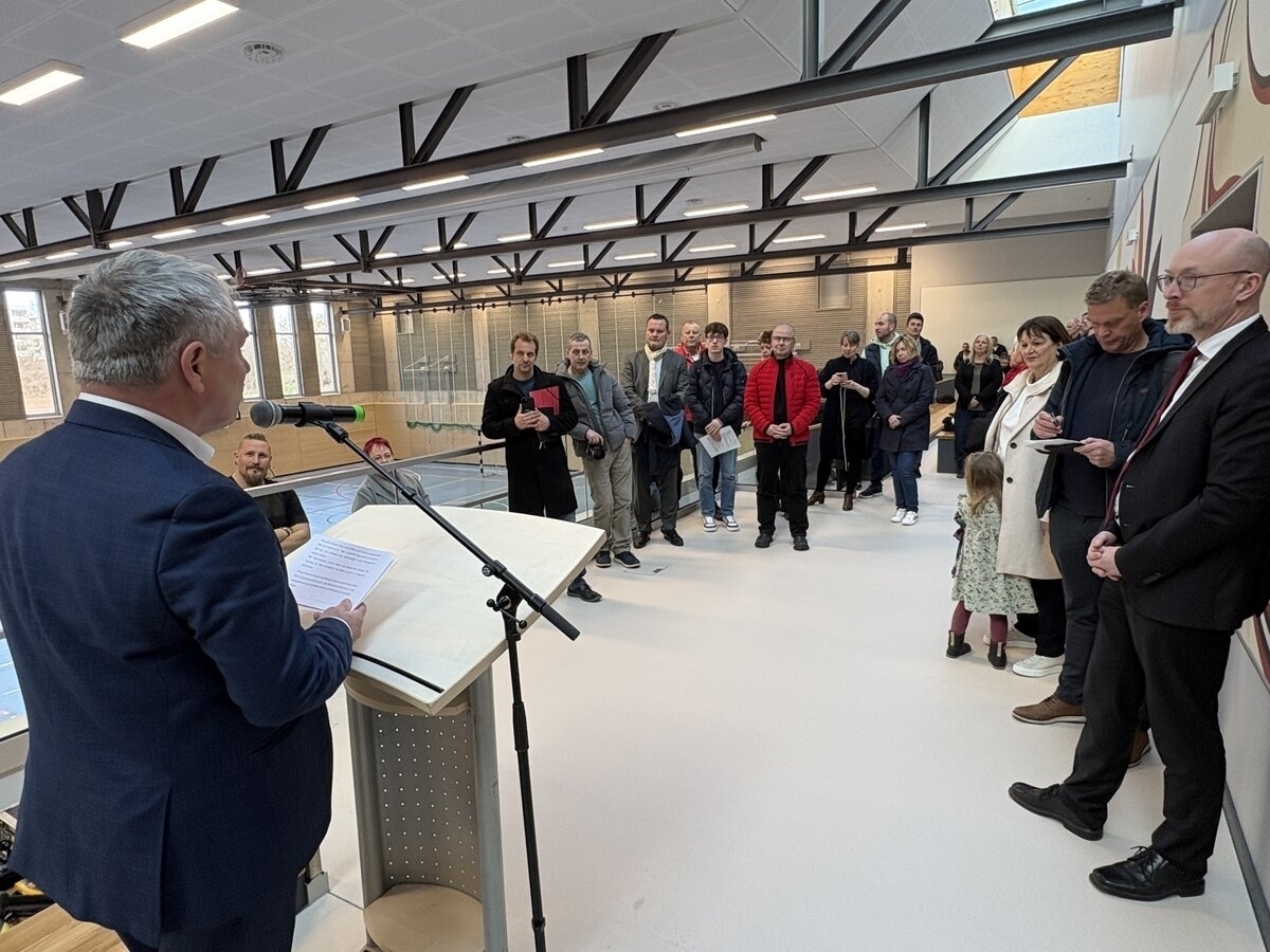 Eine gute Nachricht für den Schul- und Vereinssport in Wismar: Am 27. März 2026 ist die neu gebaute Sporthalle am Friedenshof I eingeweiht worden. Bei der Feier waren neben Bürgermeister Thomas Beyer, Senator René Domke und Senatorin Heike Bansemer unter anderem auch Christian Pegel, Minister für Inneres, Bau und Digitalisierung des Landes Mecklenburg-Vorpommern, Sylvia Bartsch, Präsidentin der Bürgerschaft, und weitere Bürgerschaftsmitglieder sowie Vertreterinnen und Vertreter der Verwaltung, auch des Landkreises Nordwestmecklenburg, von Schulen, Sportvereinen, Planungsbüros und Baufirmen dabei.