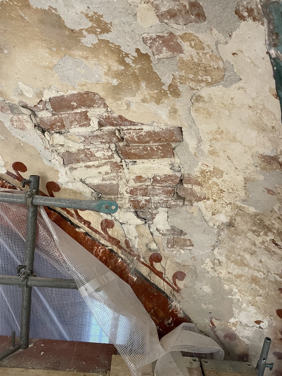 Weiterhin haben Restauratorinnen und Restauratoren Putz gesichert, gefestigt und ergänzt, Gewölbekappen entsalzt sowie Malereien an Gewölben und Wänden gereinigt, konserviert, retuschiert und zum Teil rekonstruiert. Die Stuckköpfe der Gewölbeanfänger wurden gereinigt und die Zerrbänder im Hochschiff restauriert.