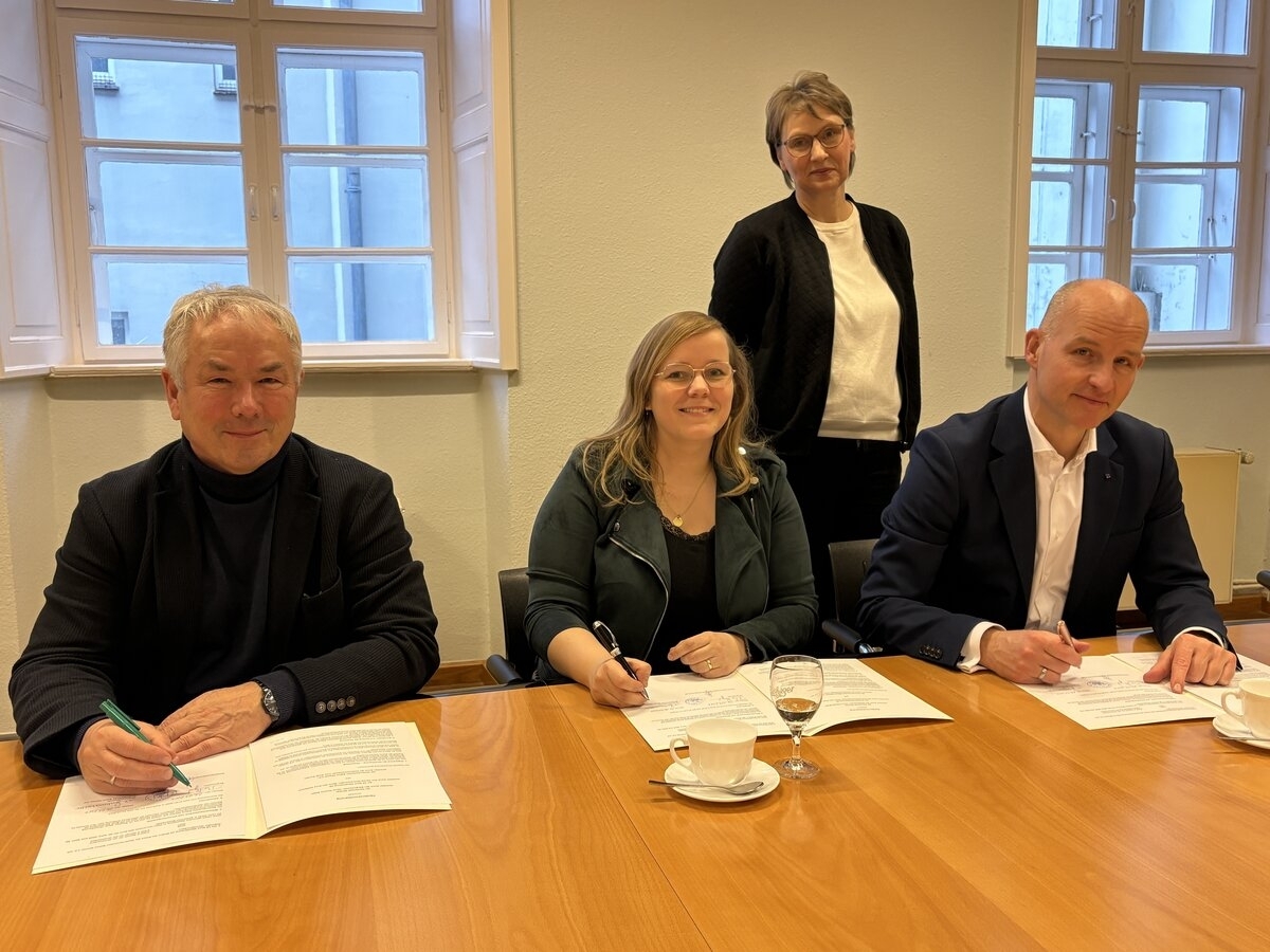 Am 26. Januar 2026 haben Bürgermeister Thomas Beyer, Jan-Arne Hoffmann, Vorstandsvorsitzender der VR Bank Mecklenburg eG, und Juliane Wolter, zweite Vorsitzende der Niederdeutschen Bühne Wismar e.V., im Rathaus der Hansestadt Wismar einen Vertrag zur Förderung der Niederdeutschen Bühne Wismar für die Jahre 2026 und 2027 unterzeichnet.